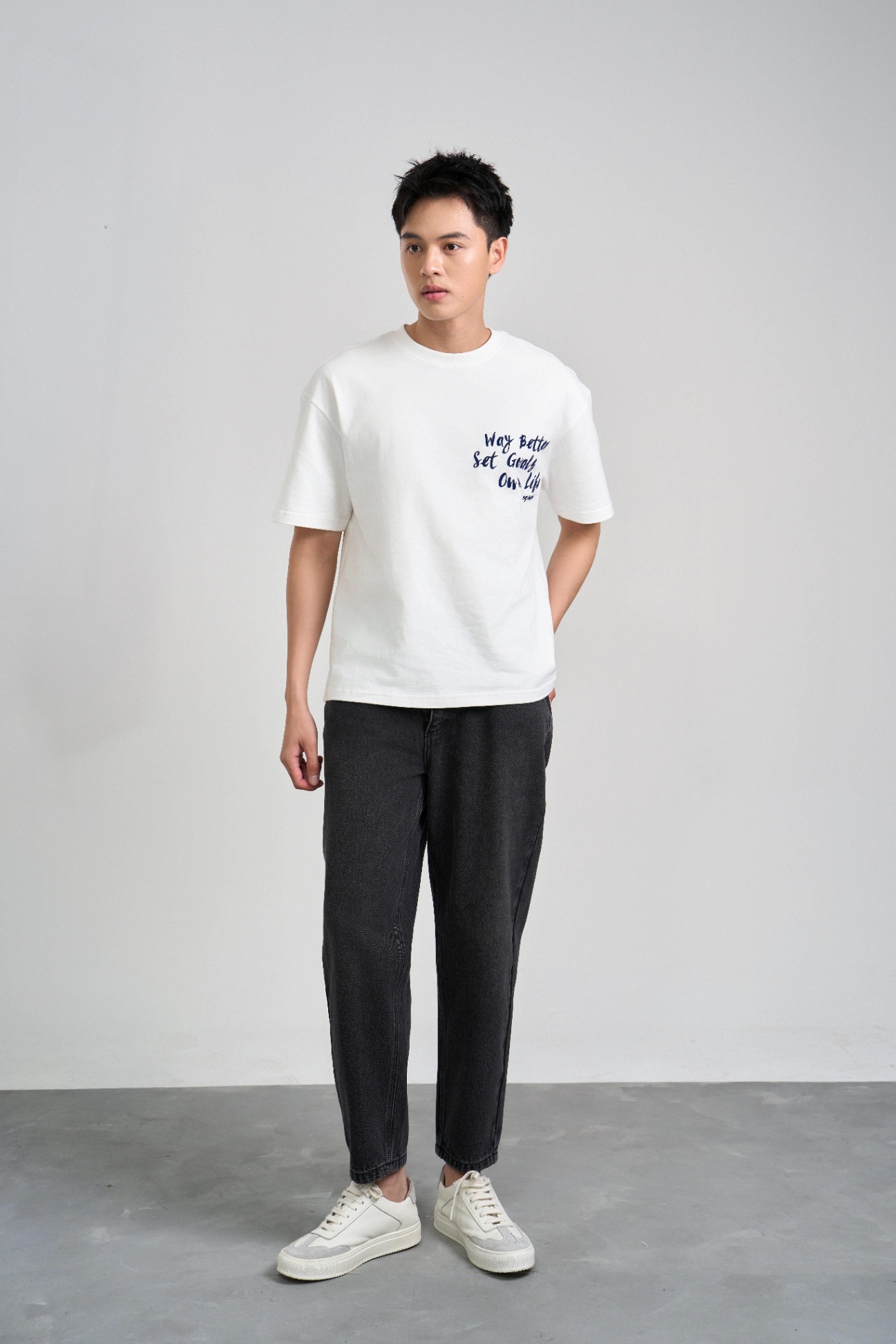 B. Form Rộng Đa Năng (Thêm Liên kết Nội Bộ) Áo có Form rộng vừa, rất dễ mặc. Nó phù hợp cho nhiều hoạt động khác nhau. Bạn có thể mặc đi học, đi chơi, hoặc dạo phố. Áo Thun Cotton In Nhung Nổi dễ dàng kết hợp với quần jeans [LIÊN KẾT NỘI BỘ tới trang quần jeans], jogger hay short cho một outfit năng động mỗi ngày.