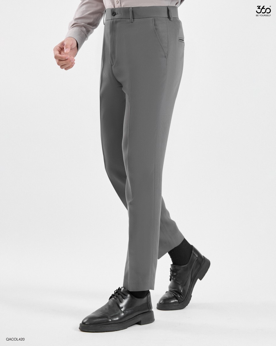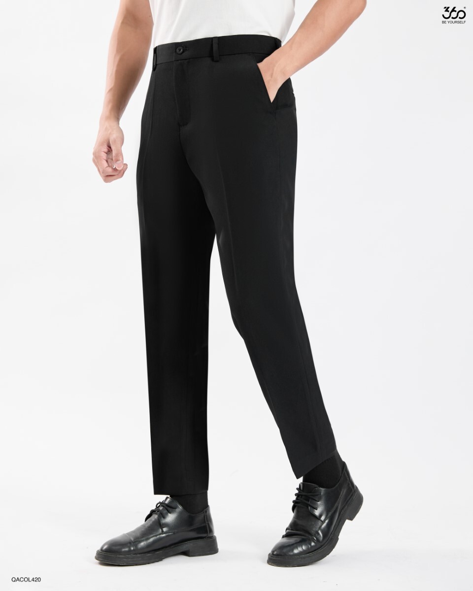 Form Dáng Hiện Đại Slim Crop: Quần âu cơ bản dáng slim dáng ngắn trẻ trung. Form dáng này không quá bó sát, tạo cảm giác thoải mái nhưng vẫn ôm vừa vặn để tôn dáng. Chiều dài ống quần lý tưởng (crop) giúp khoe khéo đôi giày. Đây là form dáng “quốc dân” đa dụng, có thể mix được nhiều loại áo.